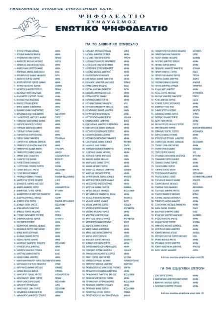 Οι υποψήφιοι που θα διεκδικήσουν μια θέση στο Διοικητικό Συμβούλιο και στην Εξελεγκτική Επιτροπή είναι οι ακόλουθοι: