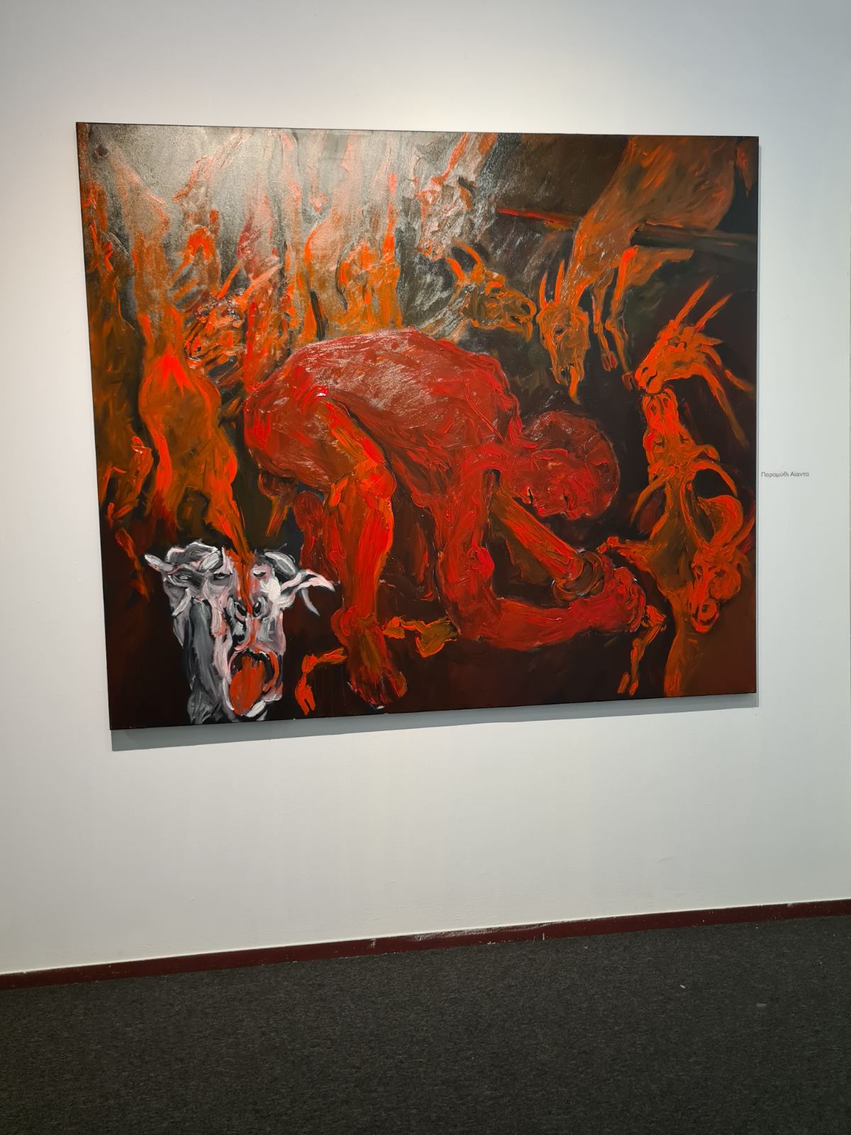 Στο επίκεντρο της έκθεσης βρίσκεται ο Οιδίποδας, μια μορφή αρχέτυπο της ανθρώπινης τραγωδίας, την οποία ο καλλιτέχνης επανεγγράφει μέσα από μια εσωτερική, προσωπική μα και πανανθρώπινη οπτική. Στη ζωγραφική του Τζερμιά, το φως δεν σώζει αλλά καίει, το αίμα, η στάχτη και το χρυσό μετατρέπονται σε σύμβολα γνώσης και ύβρεως.